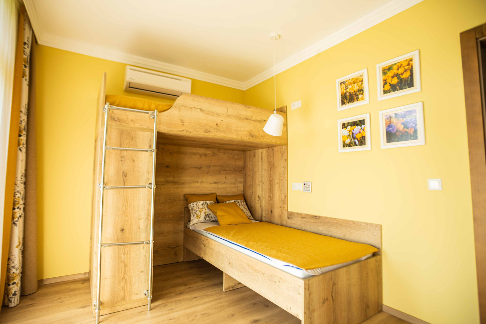 The apartments are designed for family vacations, where everyone will find their own corner. In the bedroom with a kitchenette you can enjoy peace and comfort, and a separate children's room with a bunk bed will give the little ones their own space.