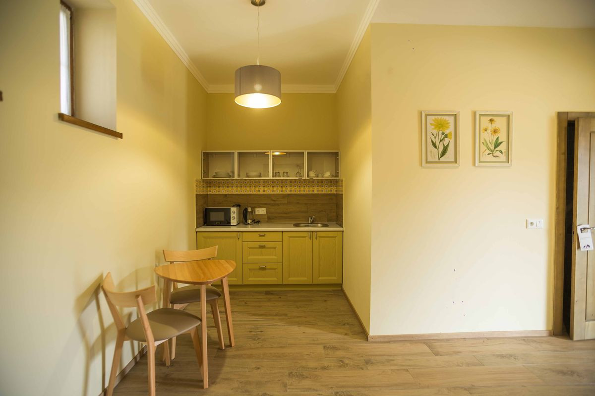 These apartments are a cozy corner for relaxation in the heart of the Carpathians. A spacious bedroom, a soft sofa and a kitchenette make the apartments ideal for a couple or a small family, and the terrace adds peace and moments to enjoy the atmosphere of the mountains.